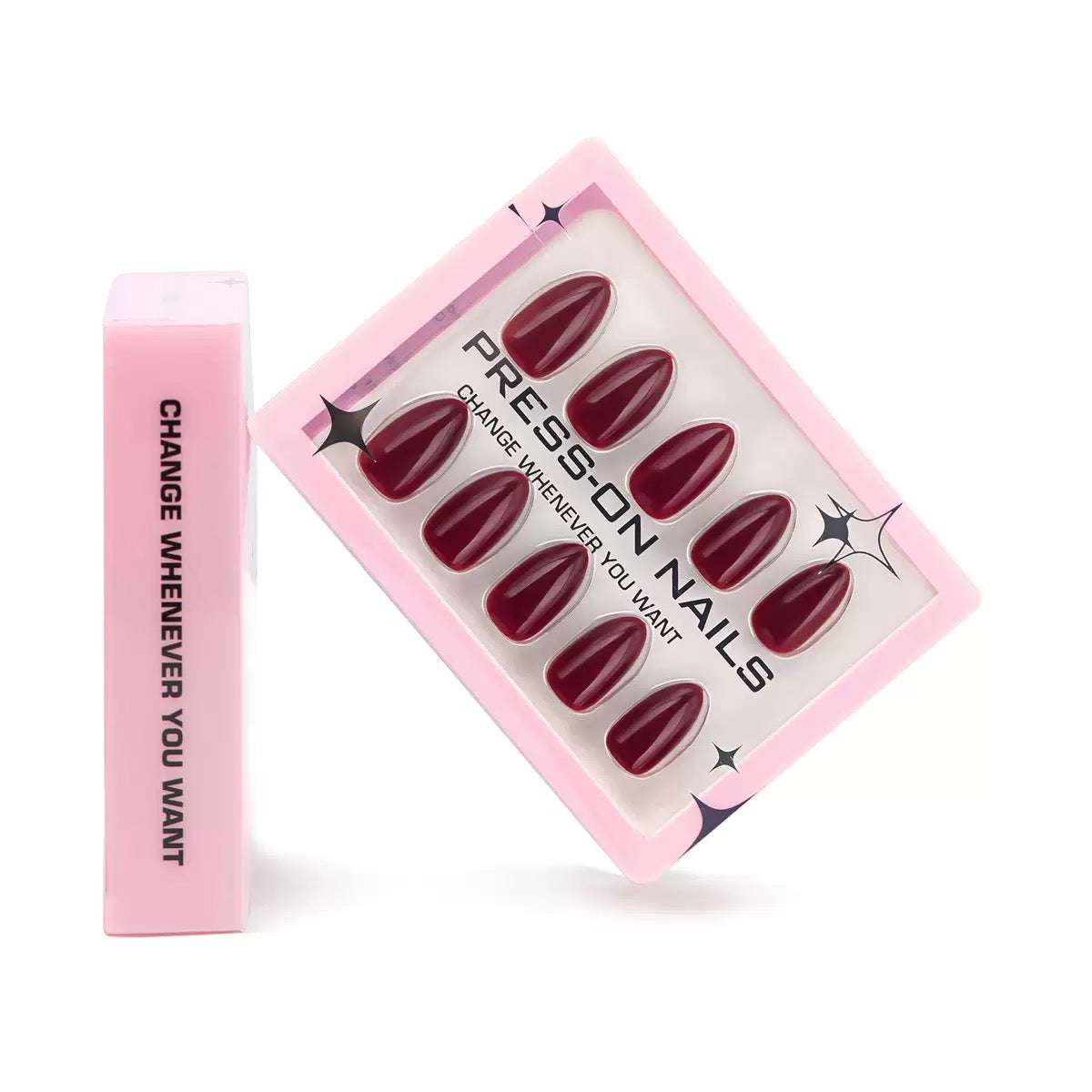 Burgundy glossy press-on nails