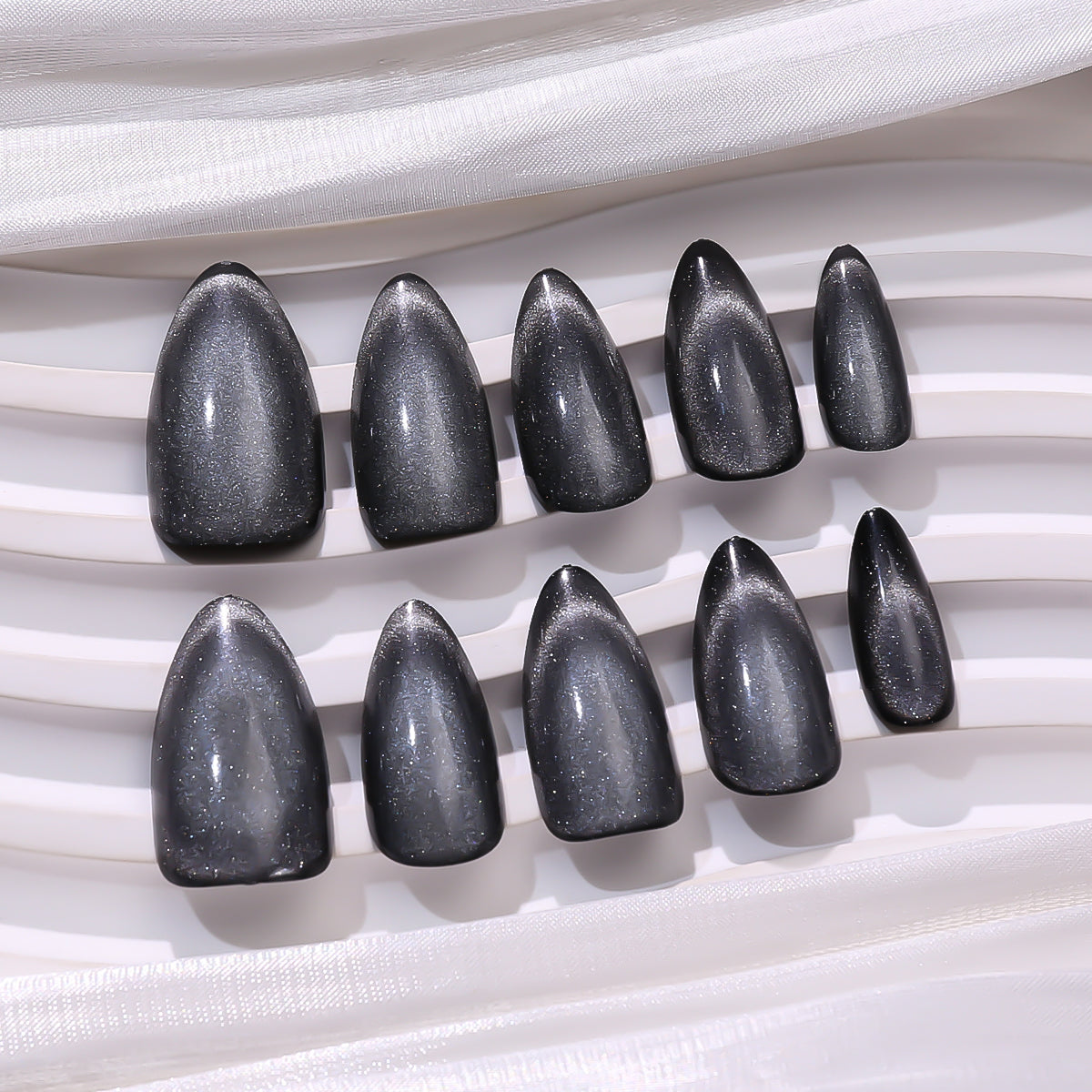 Sleek Black Glitter Almond Nails